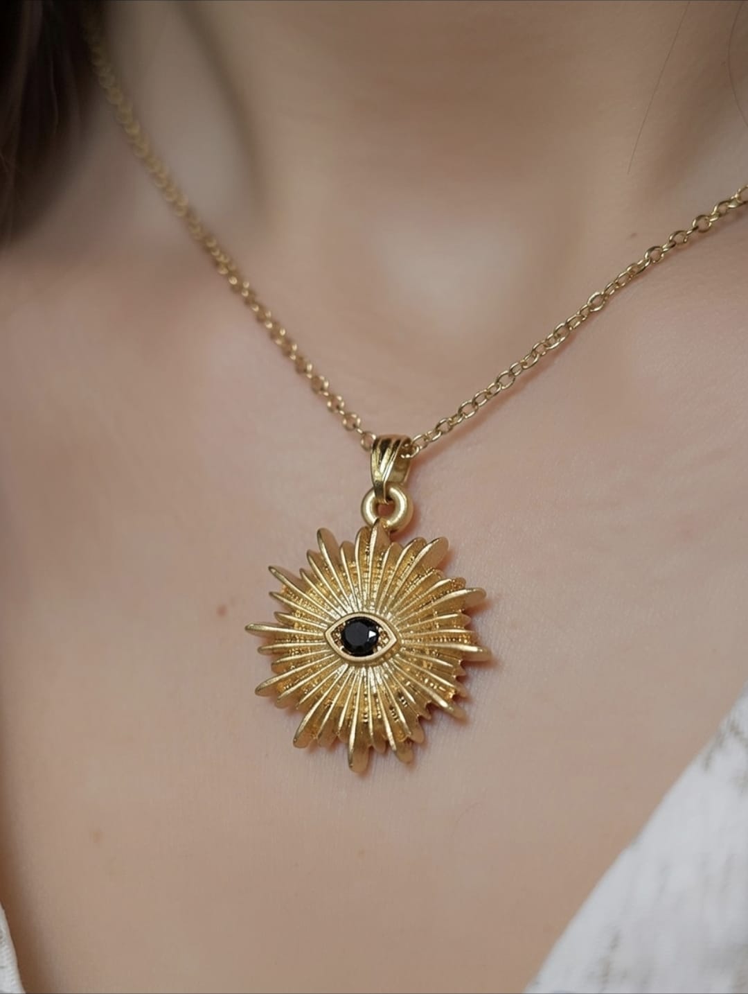 Dişil | Mistik Ruh : Güneş & Göz Tasarımlı Gold Kolye